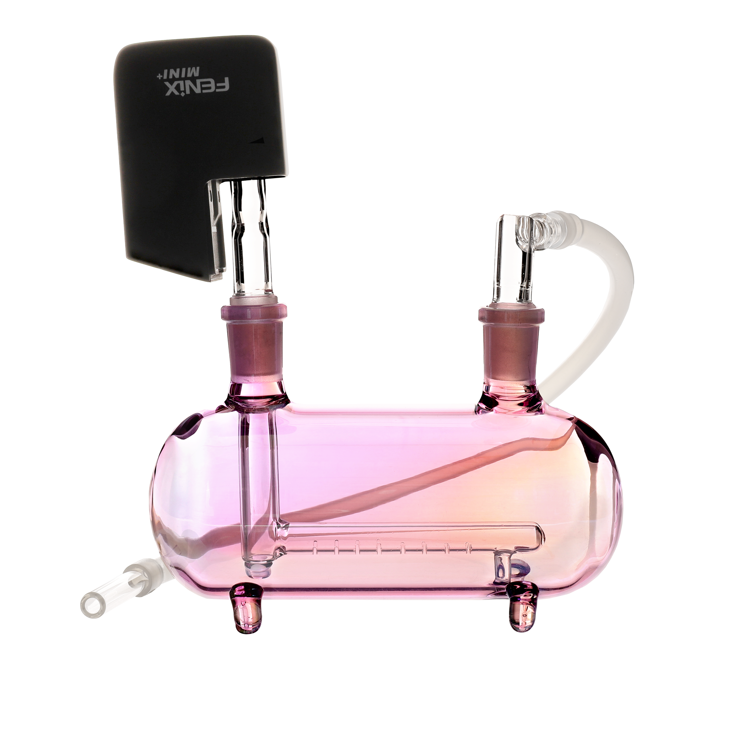 - Silikonowy wężyk wykończony szklanym ustnikiem z jednej strony i adapterem kolankowym 90° z drugiej strony
