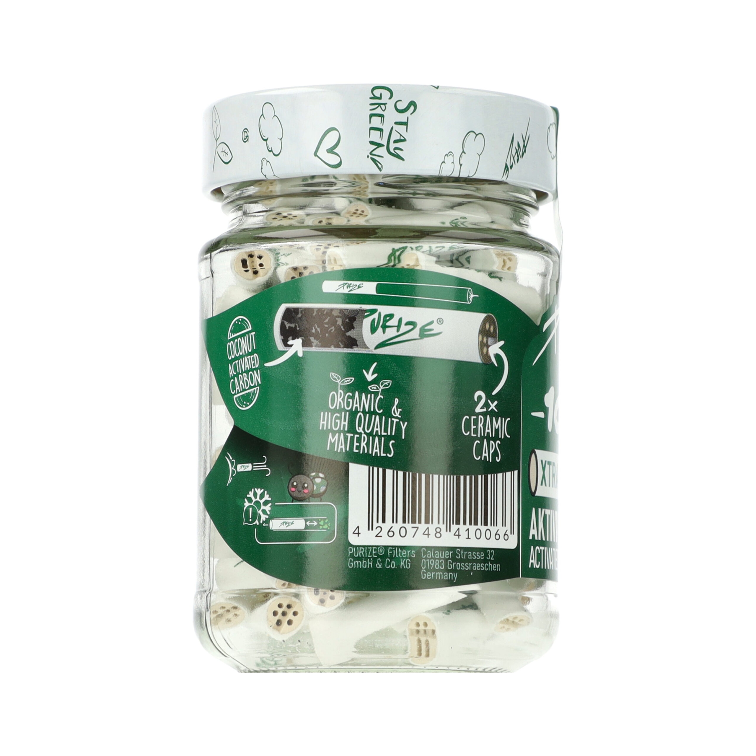 Filtry węglowe Purize XTRA Slim White 100 szt. szklany słoik BIAŁE